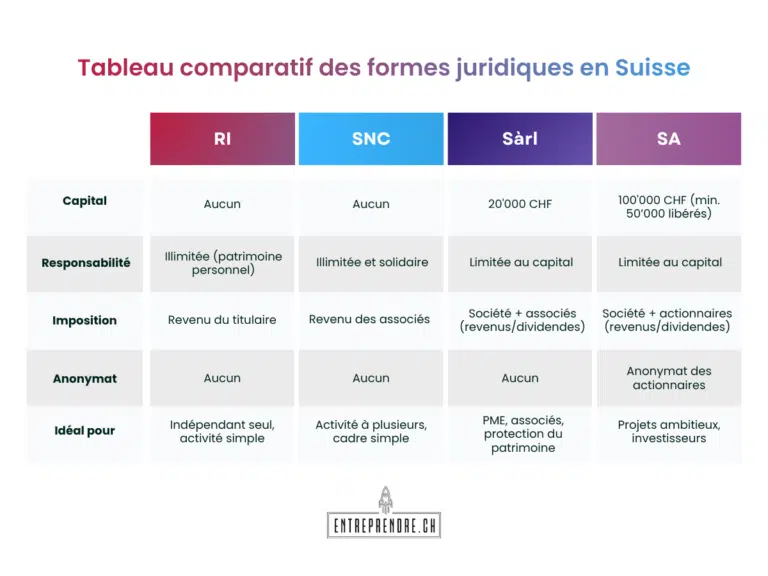 Quelles sont les principales formes juridiques en Suisse pour créer une entreprise ?